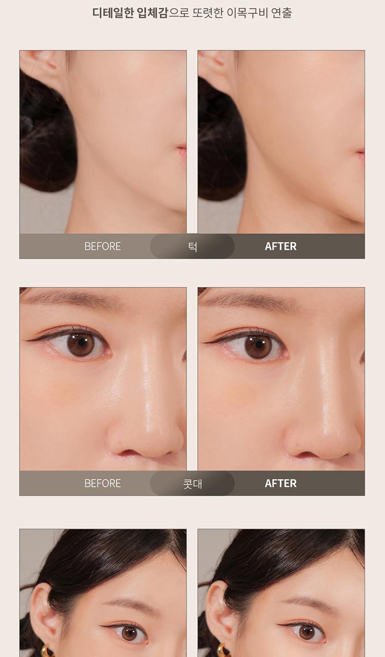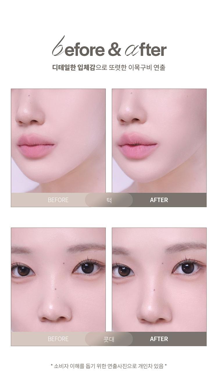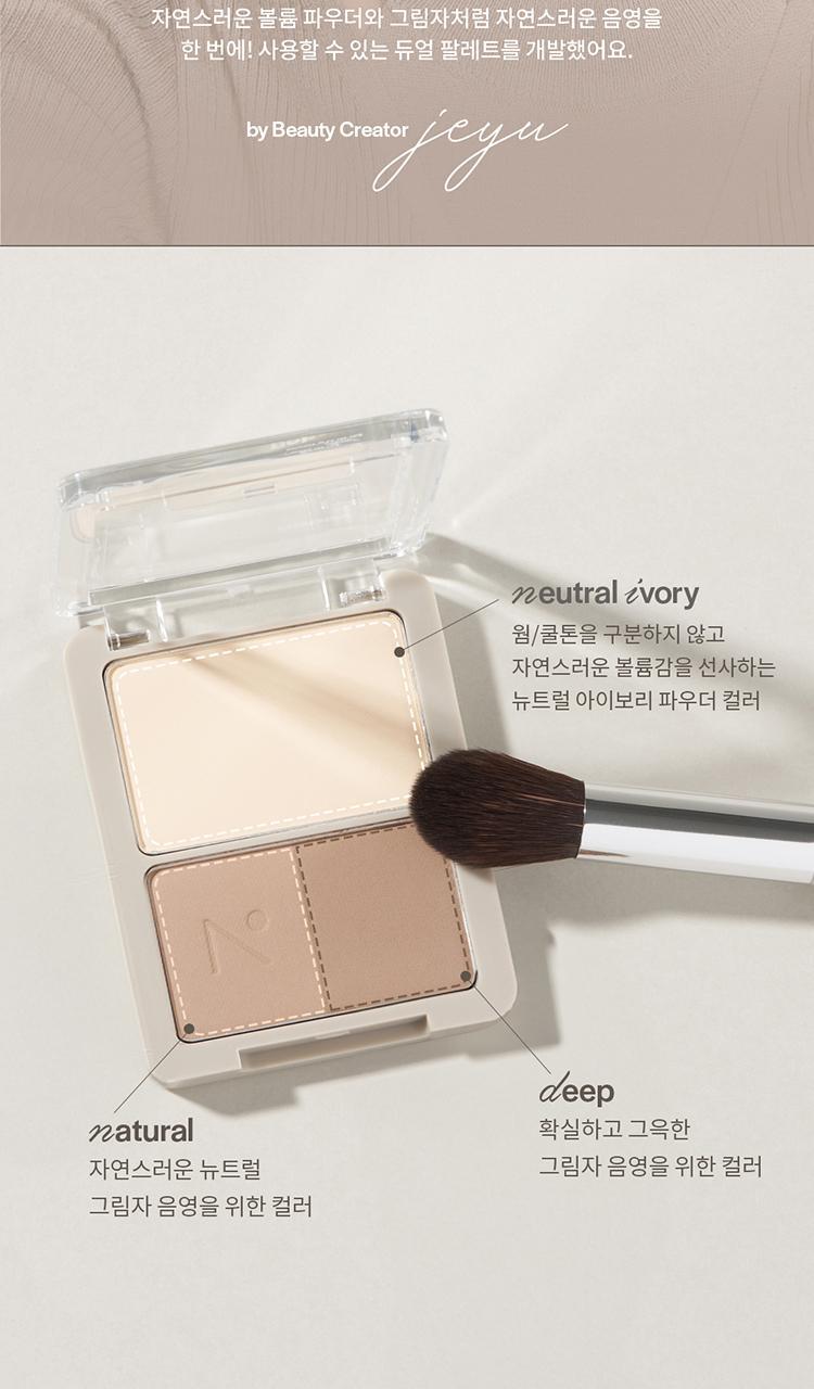 It offers volume with a powder palette of fine particles and shadow volume shading with a single touch using the soft shading color. It is a product with colors for definite and deep shadow effects and seamless neutral shadow tones.
