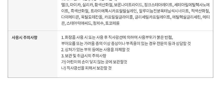 - Precautions when using: 1. Consult a specialist if you have abnormal symptoms or side effects such as a skin rash, swelling, or itchiness during use or from exposure to direct sunlight after use. 2. Do not use on wounds or other affected areas. 3. Storage and handling instructions a) Keep out of reach of children. b) Keep away from direct sunlight.