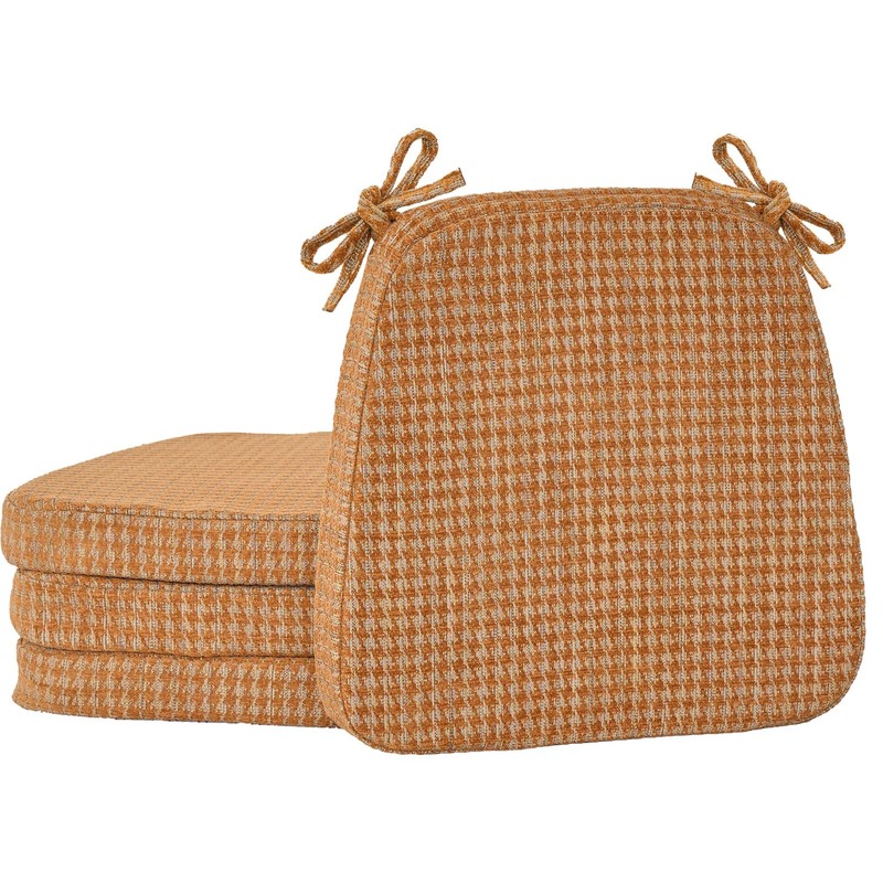 Nobildonna Chair Cushions for Dining,Kitchen,Office, 2'' Thick High-Density Foam Seat Pads with Gel-Infused, Non-Slip, Removable Washable Cover with Ties, Chair Pads,17" x 16",Orange Plaid,Set of 4