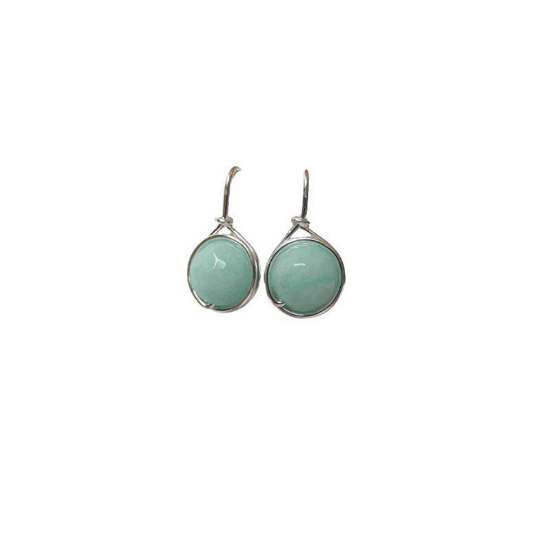 These fine earrings are made from faceted jade beads (mint dyed) and silver plated wire.