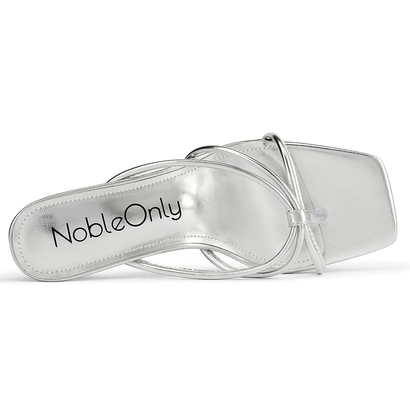NobleOnly Womens Strappy Kitten Heels Square Open Toe Thong Heels Flip Flop Heels Dress Prom Slip-on Mule Heels 2.6 Inches Heels Silver 8 M US