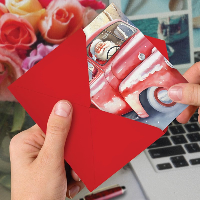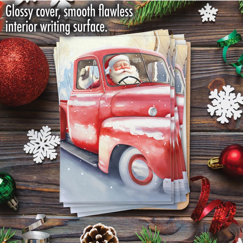 NobleWorks 12 Christmas Greeting Cards Bulk Box Set with 5 x 7 Inch Envelopes (1 Design, 12 Each) Santa Days - Red Truck C10189GXSG-B12x1