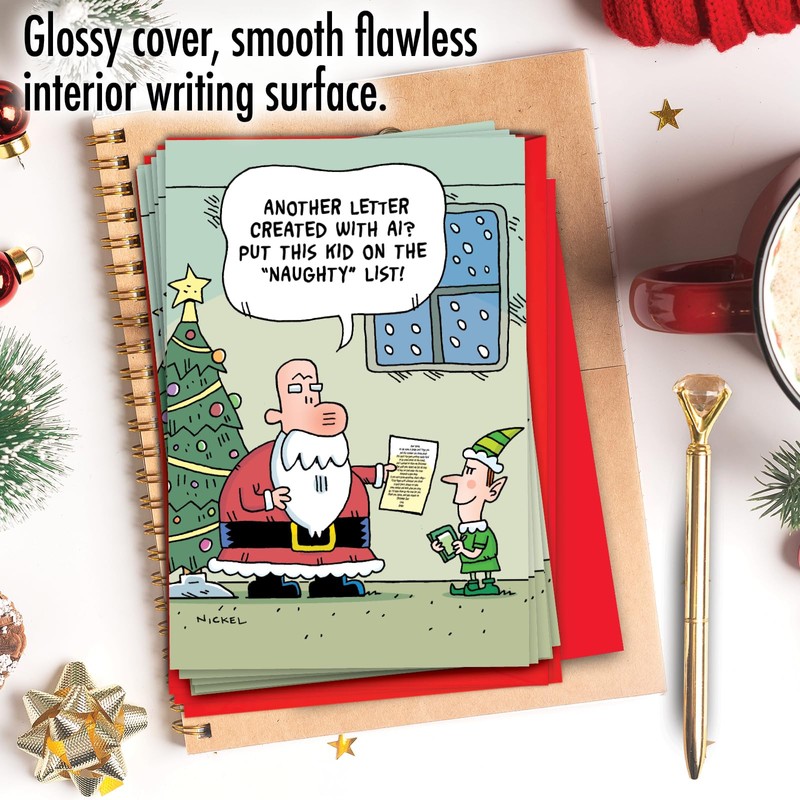 - USE: humorous stationery for writing Christmas wishes. Card's cover pages are printed on coated stock and have a gloss finish, while the cards interior pages are uncoated for a smooth and flawless writing surface for men and women.
