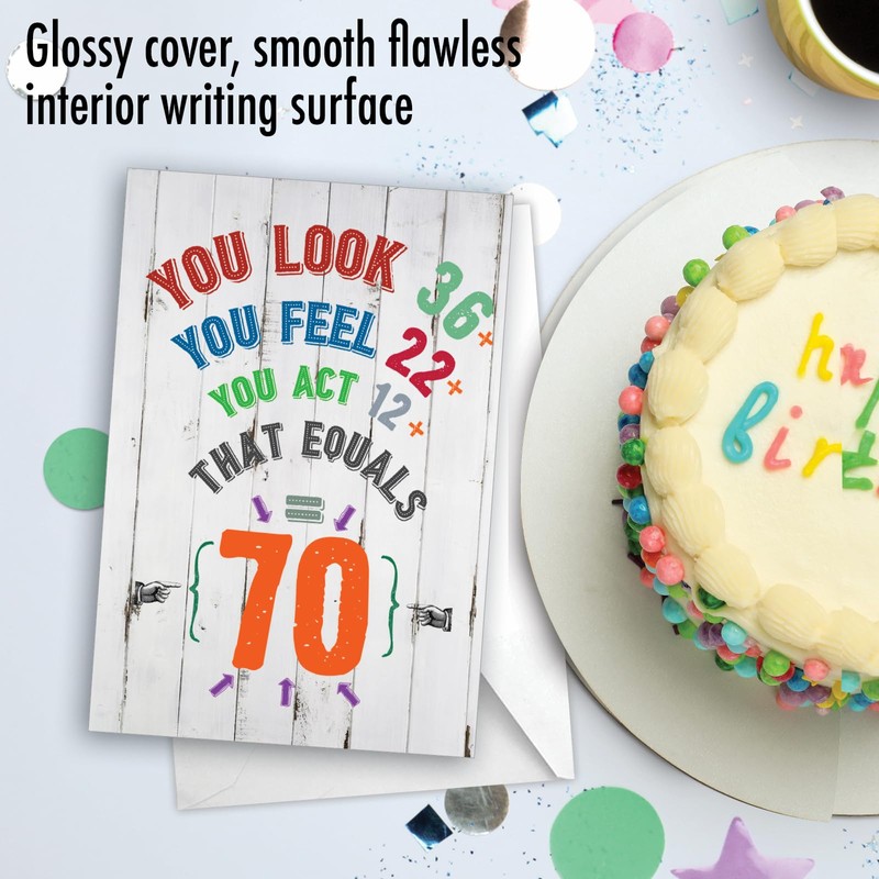 - Receive 1 greeting card with 5x7 envelope; The perfect funny gift for 70th birthdays
