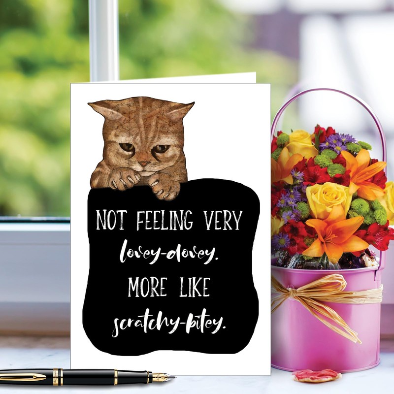 - INSIDE GREETING: "Being Sick Bites. Feel Better Soon!" COVER - Not feeling very lovey-dovey. More like scratchy-bitey.