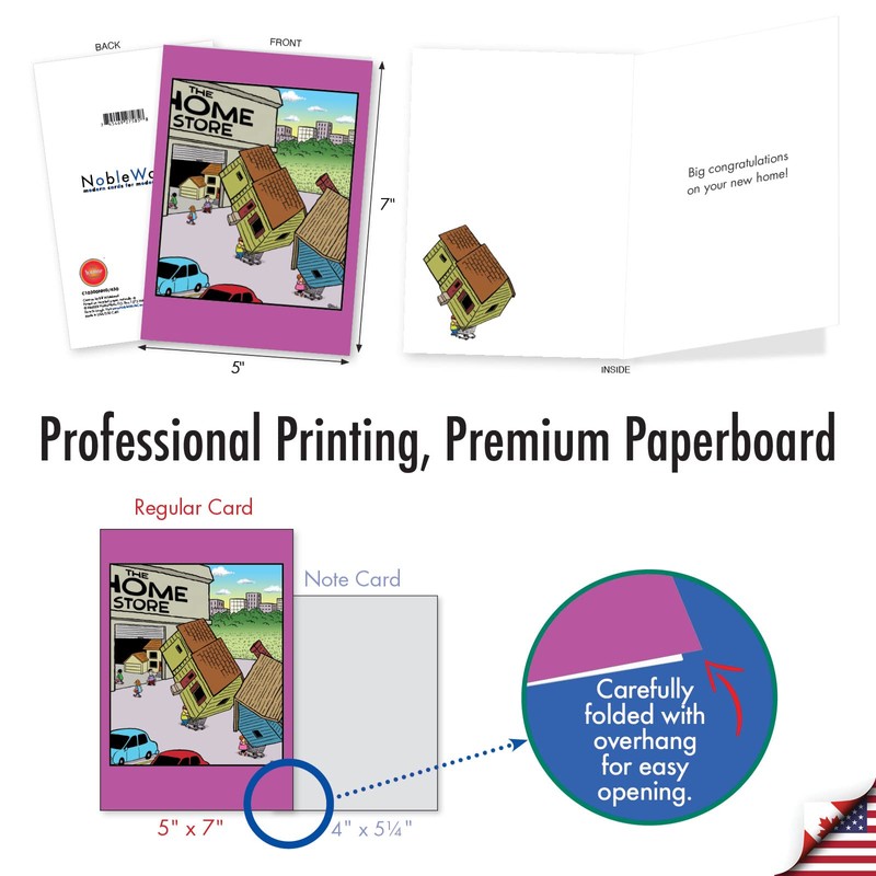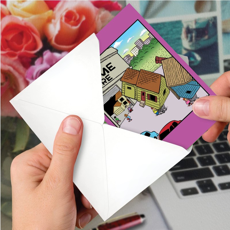 - USE - The perfect, Humorous card for writing New Home wishes! Card's cover page is printed with a high gloss finish, and the interior pages provide a smooth, flawless writing surface. Perfect for men, women, wife, husband, and friends.