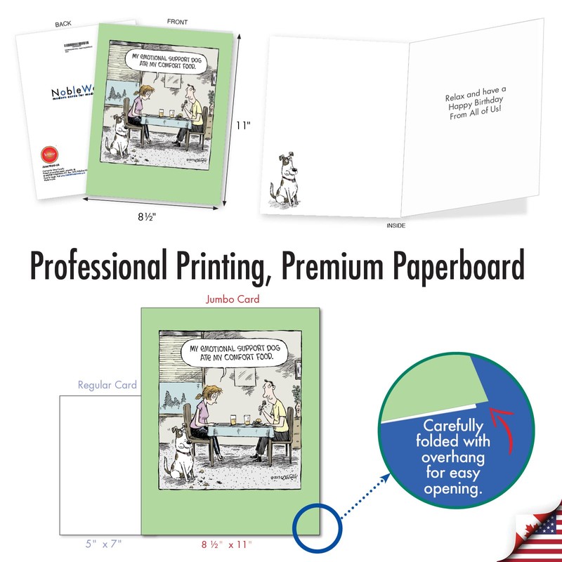 NobleWorks Jumbo Funny Birthday Paper Card From Us 8.5 x 11 Inch with Envelope (1 Pack) Big, Jumbo Bday Support Dog J3647BDG-US