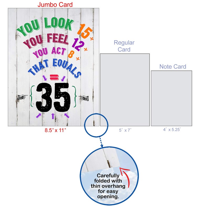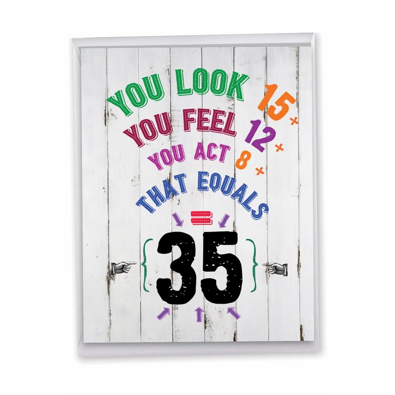 NobleWorks - Large 35th Happy Birthday Card (8.5 x 11 Inch) - Funny 35 Year Milestone Bday Congrats, Jumbo Group Card from All of Us - Age Equation 35 J9417MBG-US