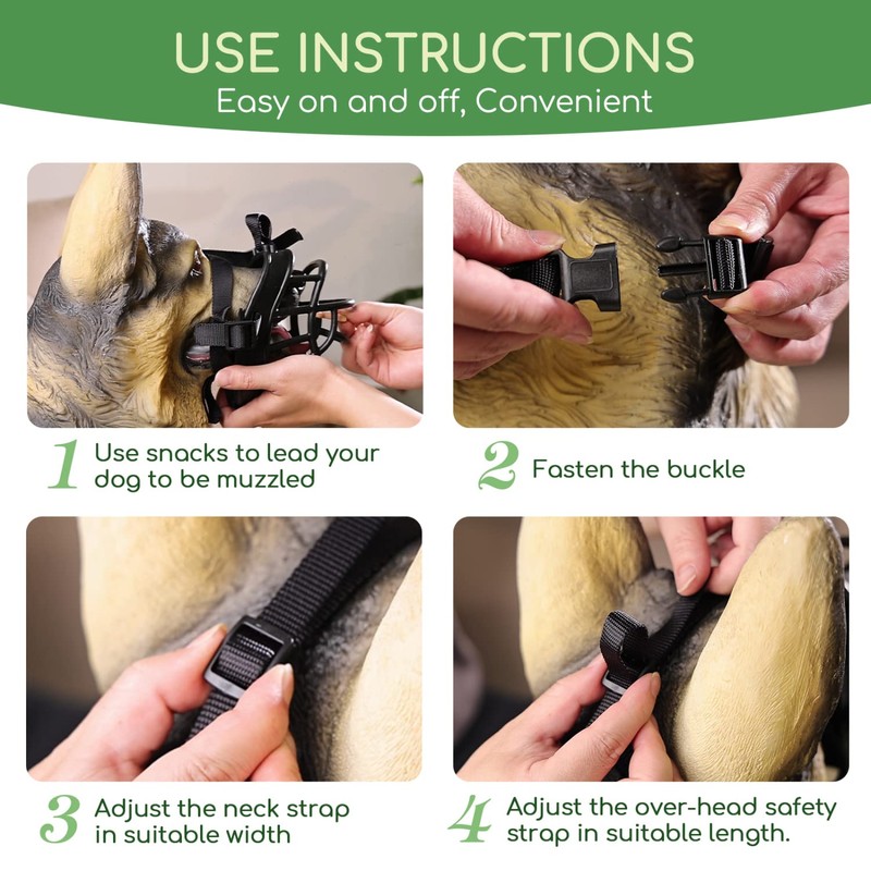 - ADJUSTABLE: An elastic band is added on the over-head safety strap to reduce the tension when tightened and avoid the muzzle chaffing your dog’s nose. The adjustable neck strap fit on your dog’s neck tightly and securely, while the safety loop is fixed to your dog's regular collar. You will never worry about it falling off.