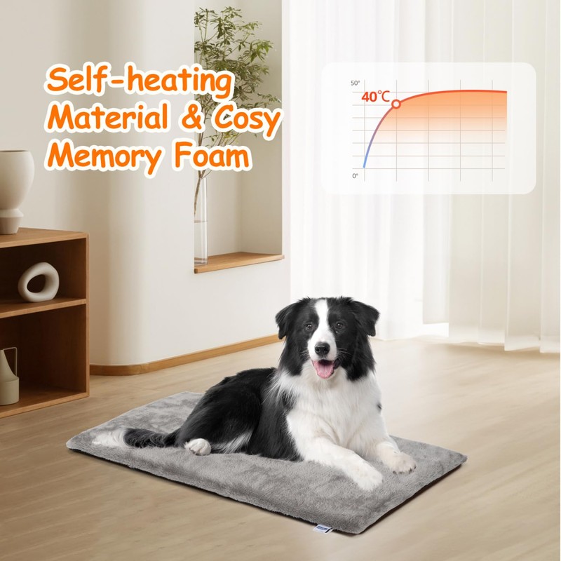 Nobleza Self-Heating Dog Mat for Dogs and Cats, Pet Warming Mat, Winter, Dog Cushion for Dog Beds Made of Thickened Memory Foam, with Washable, Soft Plush Cover, Grey, 76 x 48 x 4 cm