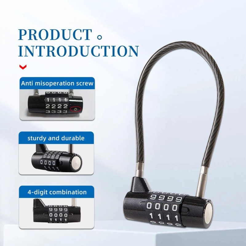 Thank you for your understanding!"About this item 【Sturdy Material】This combination padlock features a high-quality zinc alloy lock body. 【Wire Rope Cable Lock】This long lock cable is made of a 5mm thick steel cable, offering a softer wire rope and wider applicability. 【Extra Guard for Setting Code】A screw is added to the bottom of the lock to prevent accidental activation of the password setting mode. 【Simple Operation】This cabinet lock does not require a key; just follow the instructions to set your code and remember it. 【Wide Application】Ideal for indoor and outdoor use, such as lockers, gyms, gates, fences, toolboxes, cases, hasp storage, and outdoor activities. Dimensions: 2 x 0.5 x 5 inches.