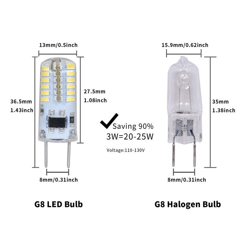 - ☼Wide Application: Suitable for T4 g8Bi-Pin, including cabinet lighting, scene light, accent light, ceiling lamp, chandelier, table lights, kitchen central lighting, spotlight, etc.