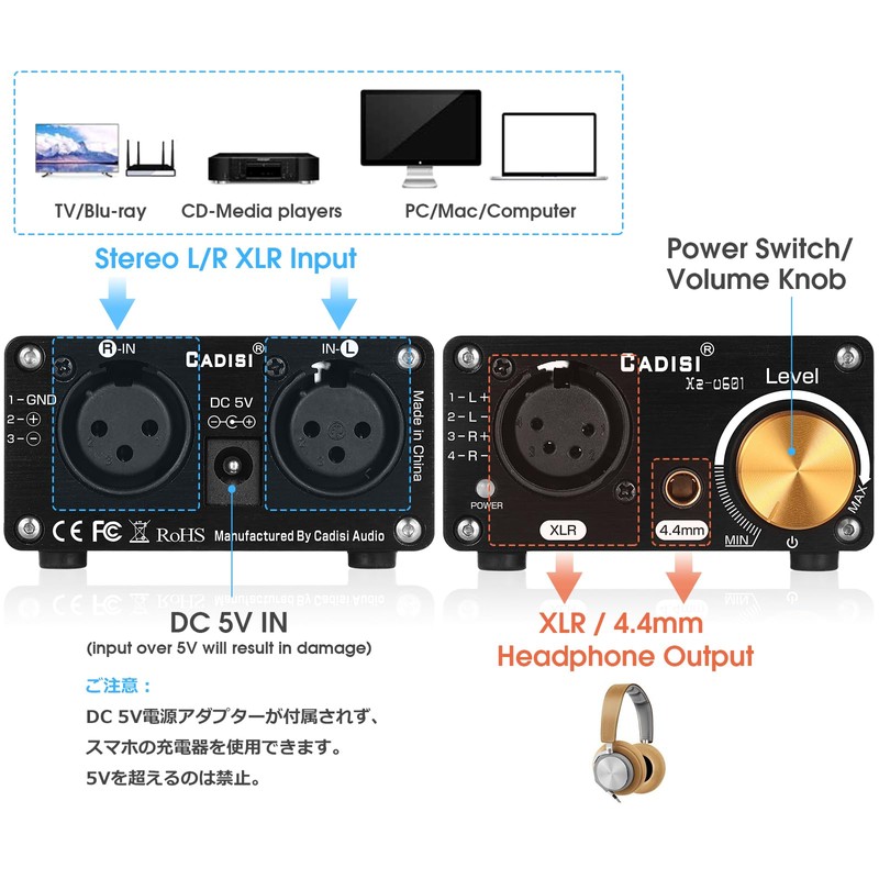 - Mini size and exquisite appearance, low distortion, high output, pure colorless sound makes it easy to experience the delicate details of the music and shocking swing. The U5 is the perfect helper for all xlr /4.4mm headphones to improve sound quality