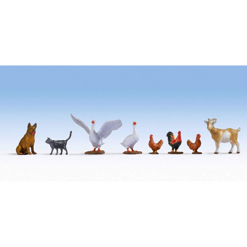 For a realistic farm, the Noch figures in the gauge 0 "Animals on the Farm" are ideal for making a model landscape even more realistic. There's something going on on on a farm - the cows on the cow pasture eat the green juicy grass, the sheep in the pasture enjoy the beautiful weather, the chickens in the chicken coop lay eggs diligently and the farmer drives his tractor across the fields. The "animals on the farm" must not be missing on any landscape model, which should appear as realistic as possible.