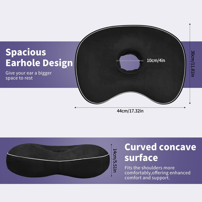 - Ergonomic C-Shaped Design naturally contours neck and shoulders while creating space to protect sensitive ears during sleep.Use with other pillows for better results