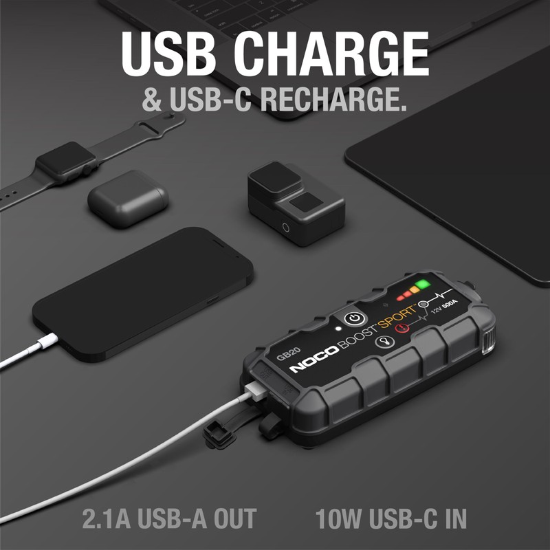 NOCO NOCO Boost Sport GB20 500A UltraSafe Car Battery Jump Starter, 12V Battery Pack, Battery Booster, Jump Box, Portable Charger and Jumper Cables for 4.0L Gasoline Engines