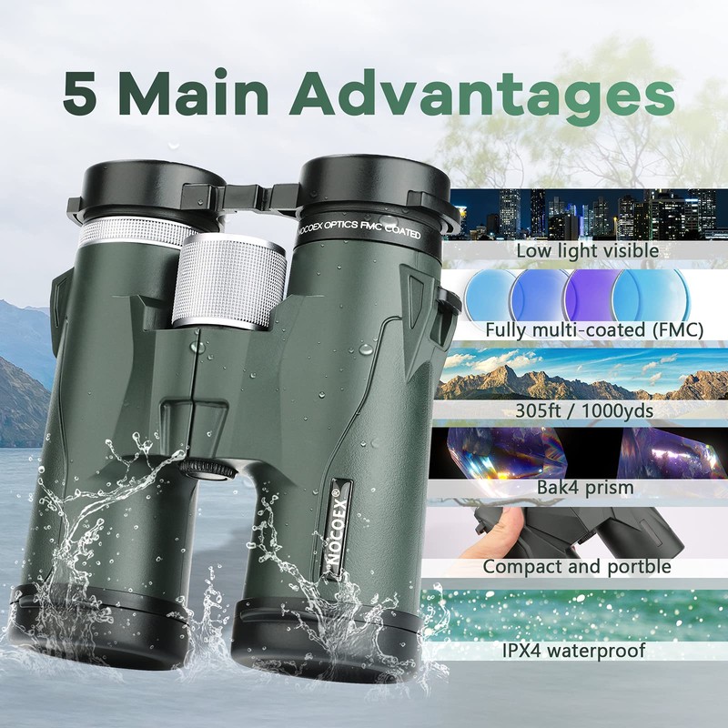 NOCOEX 10x42 Compact HD Binoculars with waterproof,Low Light Night Vision for Bird Watching Hunting Hiking Travel Stargazing Concerts Sports, BAK4 Prism FMC Lens with Strap Carrying Bag
