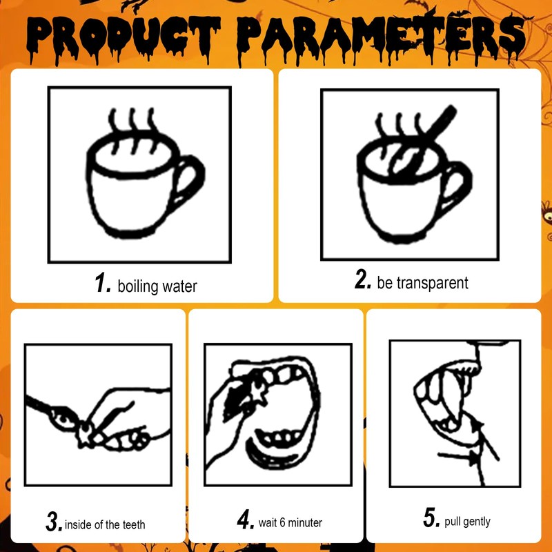 - 【Wide Application】Halloween teeth are very suitable for Halloween costume parties, such as vampire, werewolf, zombie and role-playing costume accessories. You can share Halloween cosplay vampire accessories with your friends and family
