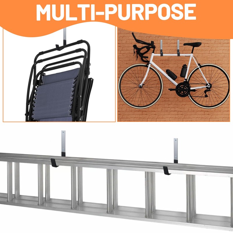 - Versatile Storage Designed for multi-tool organization, these garage wall hooks can hold a wide range of items, including bikes, ladders, garden hoses, chainsaws, shovels, and more. The 45 end hook design ensures tools stay securely hung without slipping. Perfect for garages, sheds, basements, or laundry rooms, these heavy duty hooks help maximize vertical space and keep your area clutter-free.