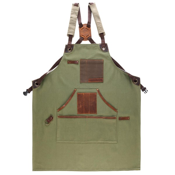 Node Leather - Cross Back Canvas Aprons With Pockets |Adjustable Leather Strap|Work Apron|Chef Apron|Woodworking, Grilling