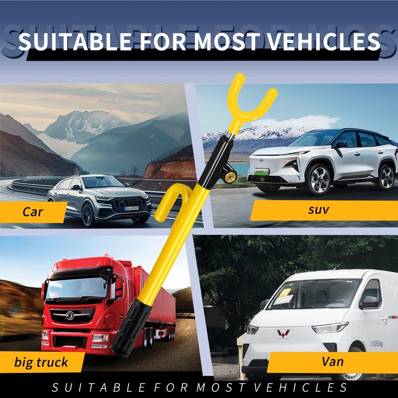 - 【Innovative Dual Hook and Adjustable Bar Design】: The lock features a innovative double hook system combined with an adjustable rod, which ensures stability and secure fit on a wide range of steering wheels.This design not only enhances the lock's overall security but also offers versatile compatibility with different vehicle models.