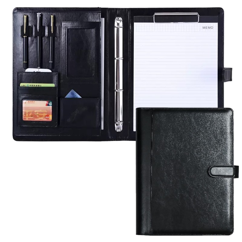 • Large Capacity Multi-Function Clipboard; Large folder for documents, magazines, tablet; Card business card pockets x 3; Smartphone and small storage pockets x 2; Pen slots x 3; Ring file function; Binder function