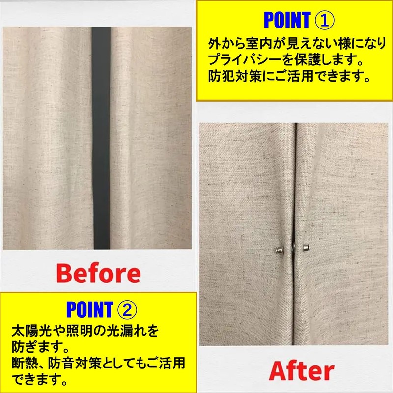 - (Light Blocking, Heat Insulation, Soundproof) Shuts out sunlight and light leakage. It helps you sleep better and prevents morning sun from leaking light in the disturbance. In addition, this curtain magnet fastener is useful for insulating and soundproofing by eliminating the gap between curtains