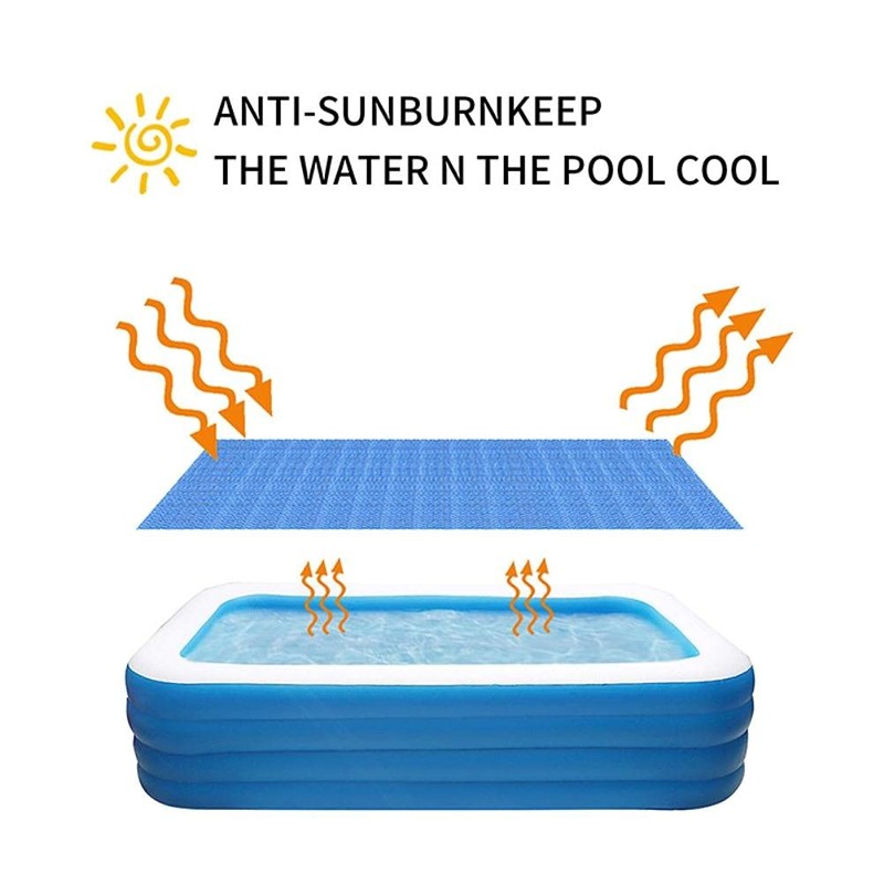 - Unique design: Our solar swimming pool cover is made of thousands of blue circular bubbles, which can keep the water warm at night and heat the pool water faster, higher and longer. The blue solar pool cover can let you enjoy the cool summer.