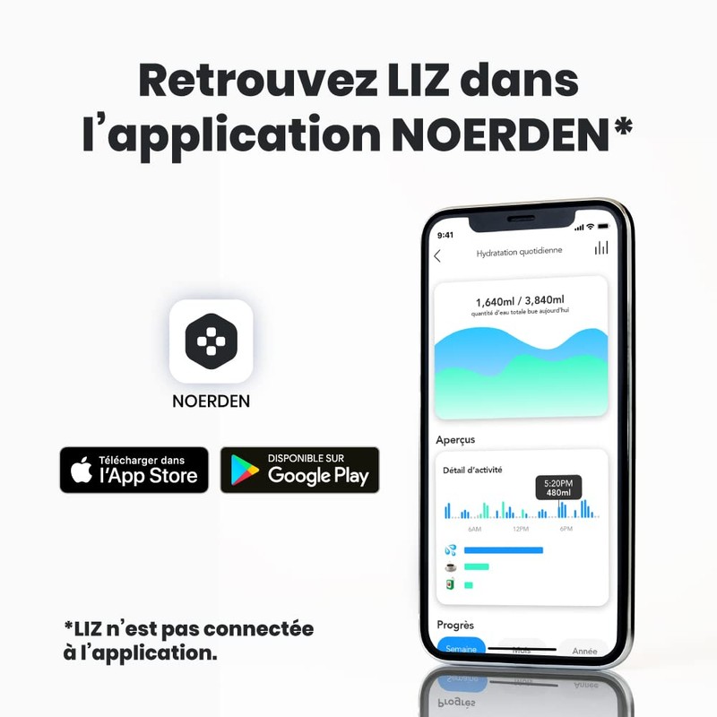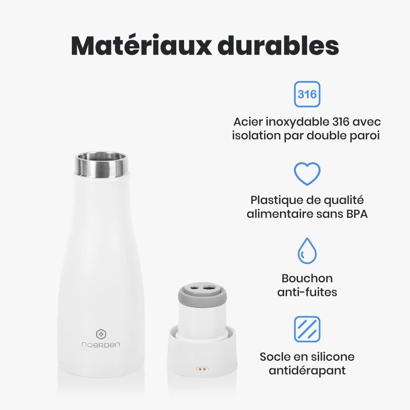 NOERDEN LIZ Smart Bottle スマート セルフクリーン ボトル UV除菌 温度お知らせ 水分補給リマインダー 350ml 12oz ホワイト