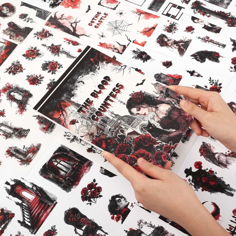 4. EXQUISITE AND INTRICATED DESIGN From various cryptos, black roses, bats, ancient castles, blood to church cemeteries, black cat, skull, words and label stickers.