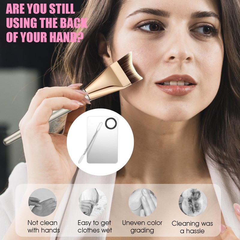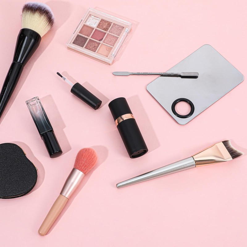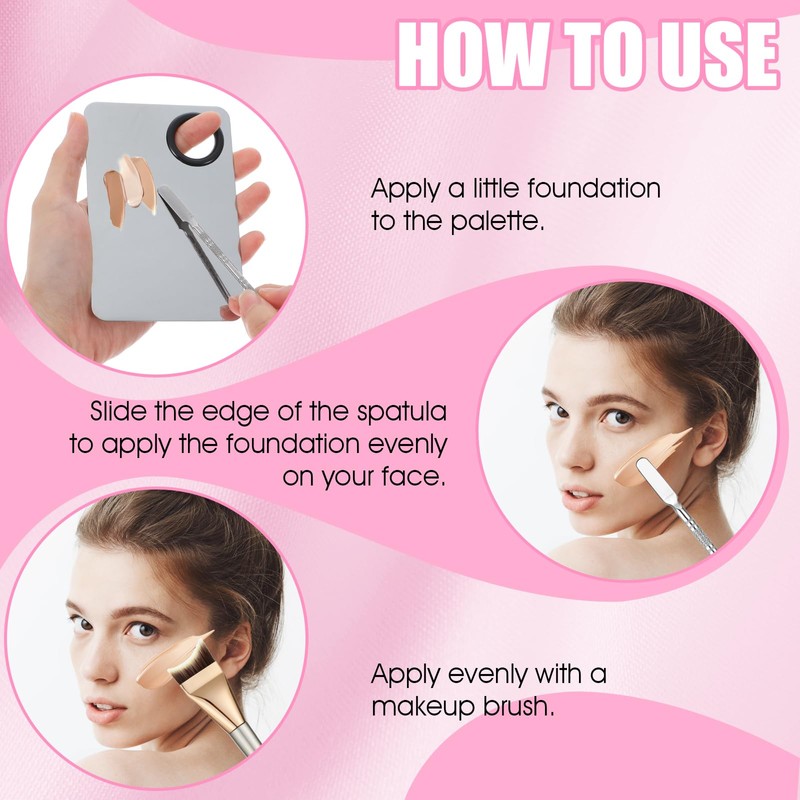 - Makeup Scraper and Palette Set: This set includes a foundation palette, a double-headed makeup scraper and a makeup brush. The design is lightweight and portable, and does not take up extra space