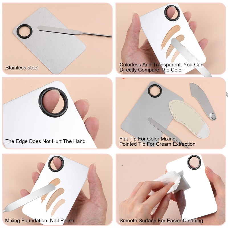 - Hygienisch & Reisefreundlich: Des glatten Edelstahls ist die Palette hygienisch und leicht zu desinfizieren. Das makeup spatula Format passt in jede Schminktasche und ist für unterwegs.