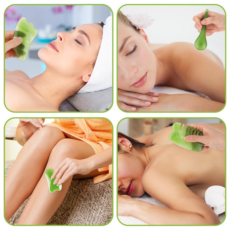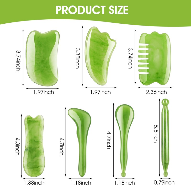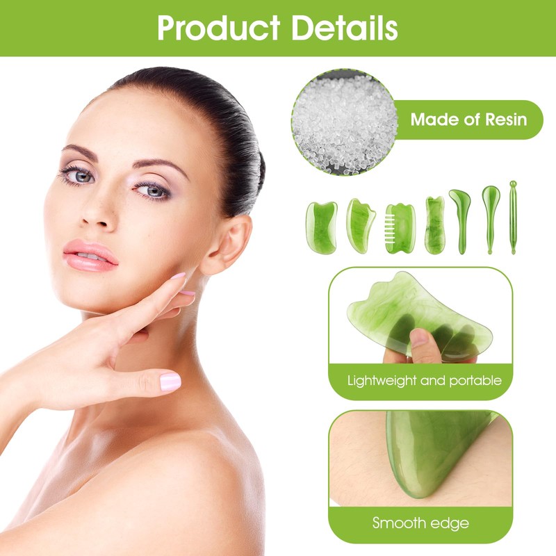 Nogeqi 7 Pcs Gua Sha Facial Tools Set, SPA Scraping Massage Tool, Guasha Tool for Body Face Back Leg Head Muscle Release and Tension Relief (Green)