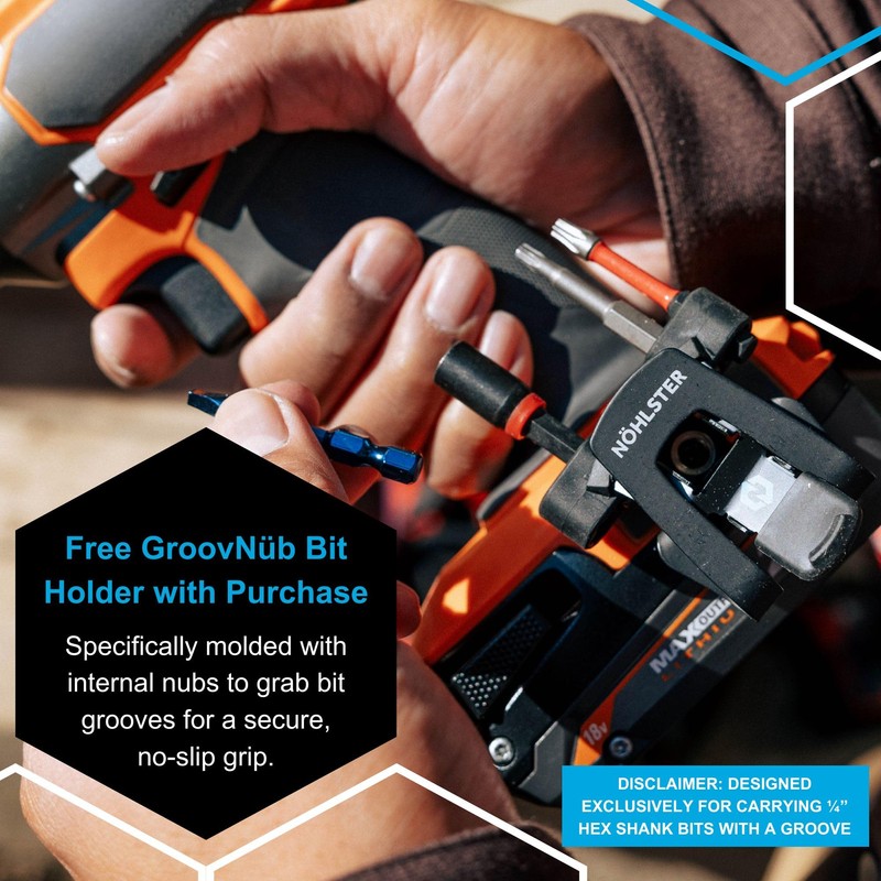 - KEEP BITS ON BOARD | Locates on clip-side of cordless power tools so longer bits won’t stab the back of hand and bits are easier to see and select. Economical replaceable drill bit holder for impact driver or power drill. 4 impact bit holder design rivals more costly magnetic bit holder. The GroovNüb bit holder is optimized for bits with a groove. Internal nubs grab bit grooves to grip bits better.
