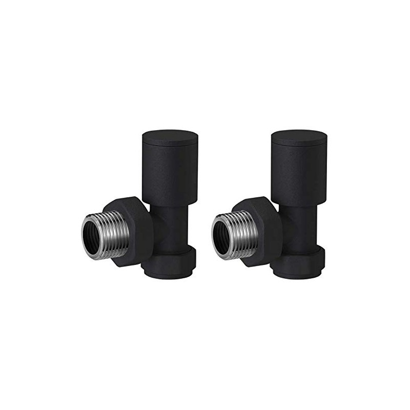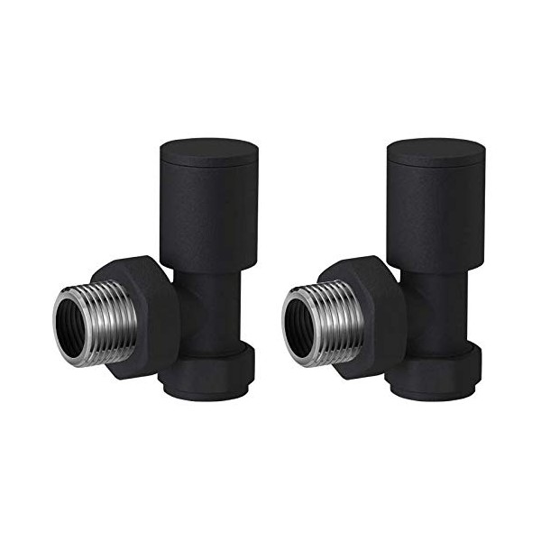 Noir Angled Towel Radiator Valves Matte Black Round 15mm *Twin Pack*