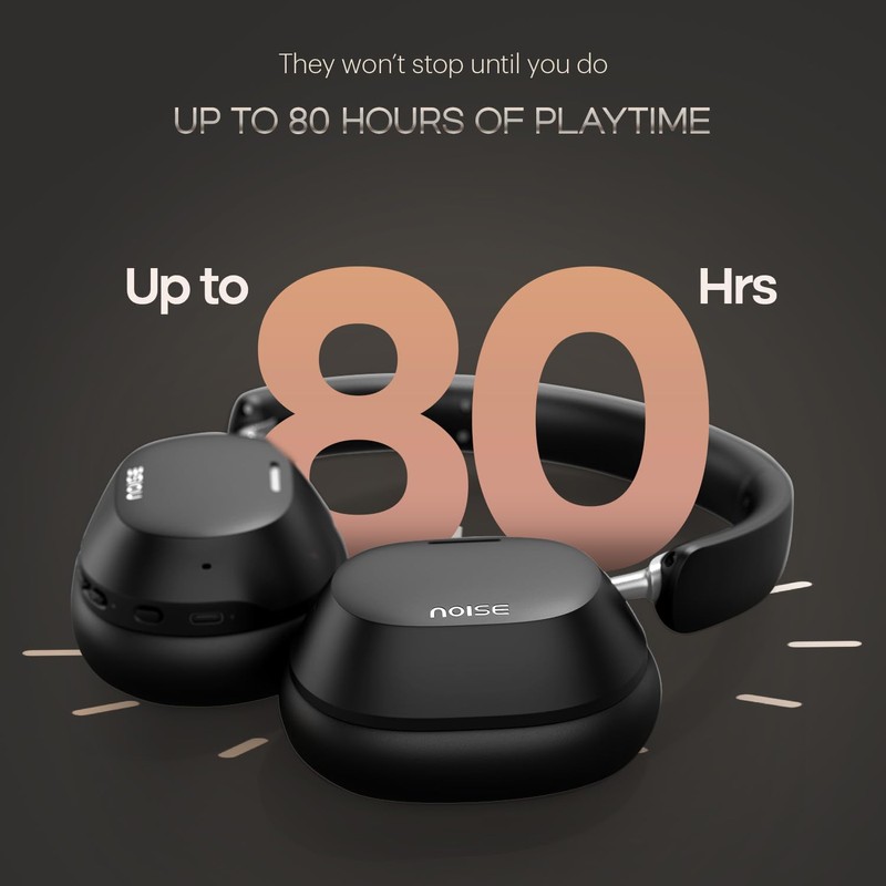 Noise Newly Launched Max 5 Wireless Over-Ear Headphones with Adaptive Hybrid ANC (up to 50dB), HFA Tech, 80H Playtime, Dual Pairing(Carbon Black)