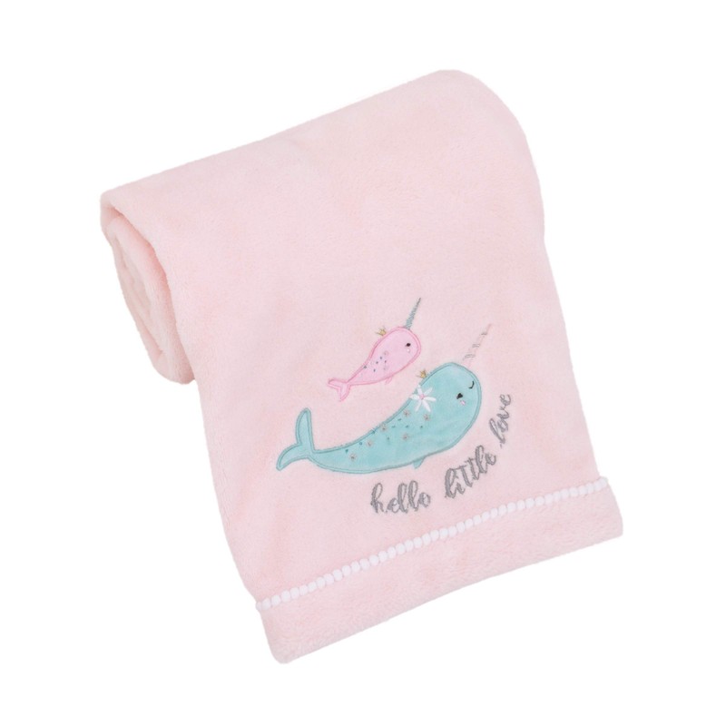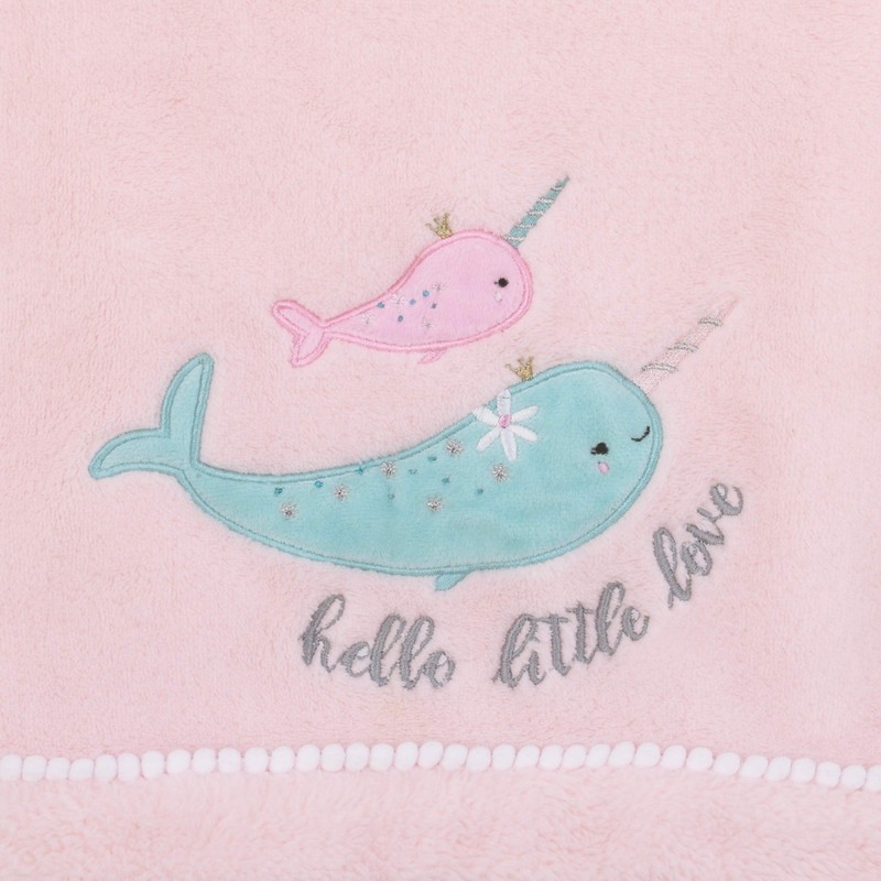 NoJo Under The Sea Whimsy Pink and Blue Narwhals Super Soft Appliqued Baby Blanket