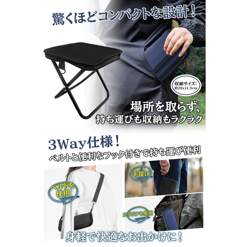 - (3-Way Carry/Lightweight Portability) The Nokitobu folding chair comes with special hooks on both sides, and a durable nylon strap and sturdy metal carabiner. 3 ways to carry it on your shoulder, handbag, backpack or clothing You can feel the superior portability of your body while climbing, camping or on the go