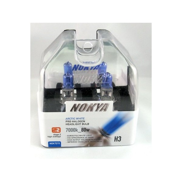 Nokya H3 Arctic White Stage 2 7000K Halogen Headlight/Fog Light Car Light Bulb Replacement + Free Alcohol Swabs
