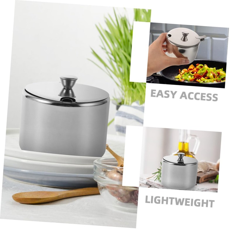 - Condiment pot:made from stainless steel, this jar is and easy to clean, ensuring your food stays fresh,salt storage container