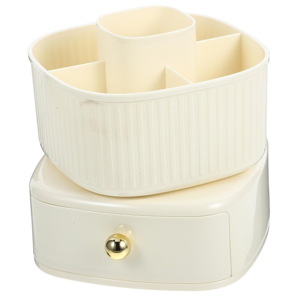This desktop rotating makeup brush storage tube lipstick box is in cream platinum color, with unique design and multiple functions, making it an ideal choice for makeup lovers. It combines a rotating design with a double-layer storage function, allowing your makeup brushes and lipsticks to be placed in an orderly manner for quick and easy use