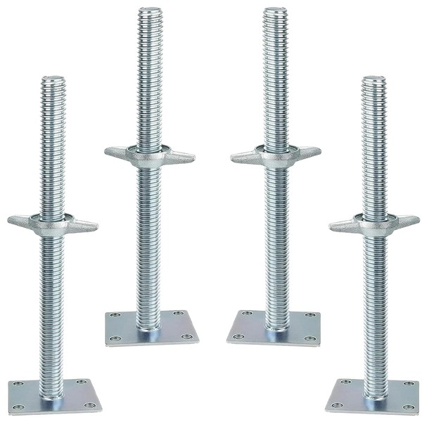 Noliven 4 Pack Screw Scaffolding Jack, 24" Adjustable Scaffold Leveling Jacks, Solid Screw Jack Stands with Base Plate, for Baker Style Scaffolding