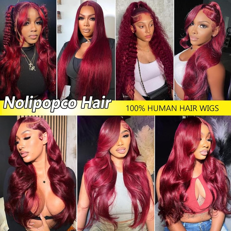 Nollipopco 30inch 99j burgundy lace front wigs human hair 13x6 HD Body Wave Lace Front Wigs Human Hair 200 Density Pre Plucked Glueless Frontal Wigs Human Hair for Black Women
