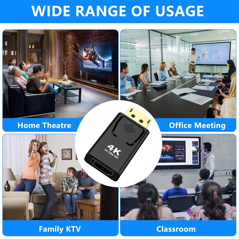 - 【Wide Compatibility】Our DisplayPort to HDMI Converter is perfect for home, office, late-night gaming or home theatre, 4K DP to HDMI Adapter is fit for various laptops, desktops, GPU and other devices with a DisplayPort.Connect to TV, Projector, Monitor, VR headset for both video and audio transfer. (Note: It is a PASSIVE uni-directional adapter, only converting signals FROM DP source TO HDMI display.)