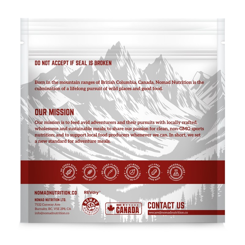 - 𝗡𝗢𝗠𝗔𝗗 𝗡𝗨𝗧𝗥𝗜𝗧𝗜𝗢𝗡 – Nomad Nutrition promotes a wholesome, organic lifestyle through its range of adventure meals specially designed for outdoor enthusiasts, including backpackers, hikers, climbers, hunters, and anyone embarking on overnight journeys. Our primary aim is to offer you the finest ingredients and nutrition tailored to fuel your adventures. We prioritize quality, integrity, and genuine commitment to good food over profits. We’re adventurers like you