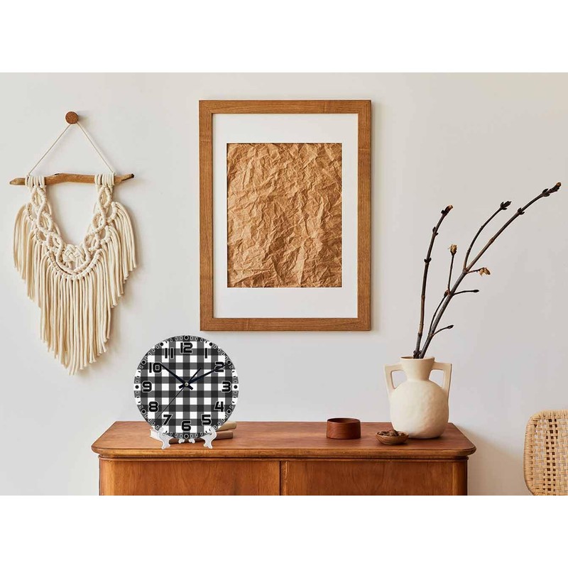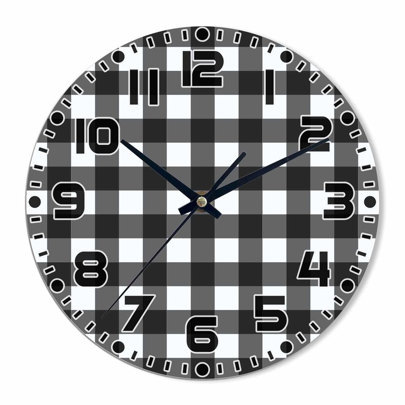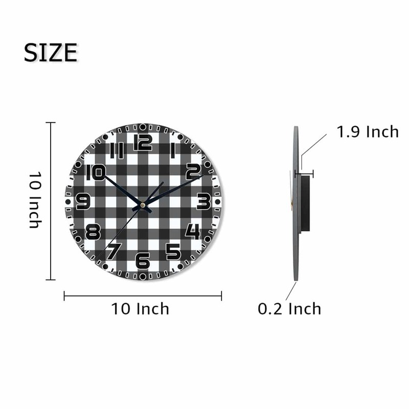 NOMEDOGYIM Checkered Wall Clock Battery Operated Black and White Wall Clock Silent Non Ticking Quality Quartz 10 Inch Round Easy Clock to Read for Home Office