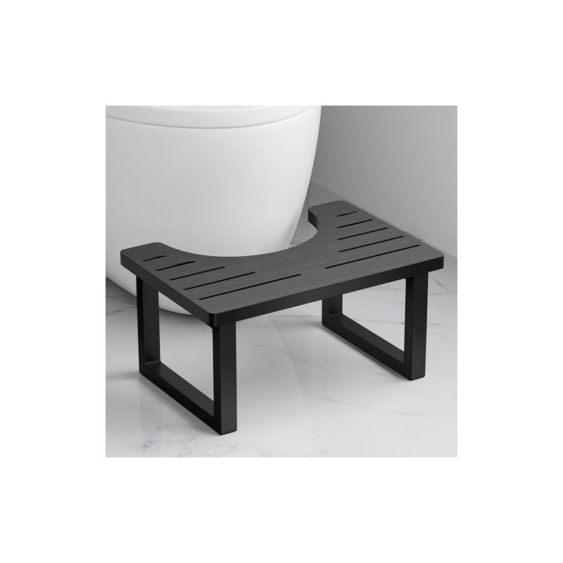 NomNest Squatting Toilet Stool, 7 Inch Bamboo Potty Stool for Adults-Black