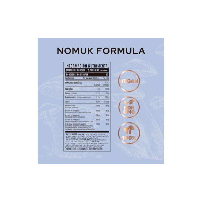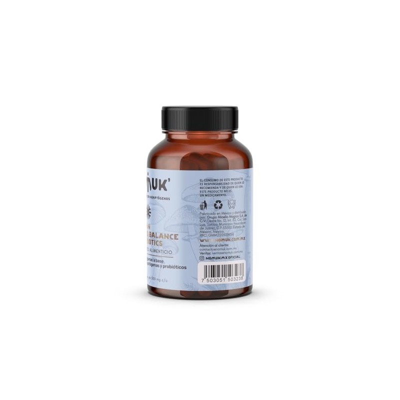 Nomuk Hormo Balance + probióticos para mujeres, suplemento con raíz de Shatavari, Maca, Schisandra y extracto de Ginseng adicionado con Probioticos | 60 cápsulas