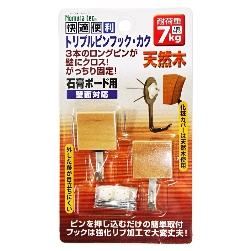 Nomuratec N-3308 Triple Pin Hook, Kaku, Natural Wood
