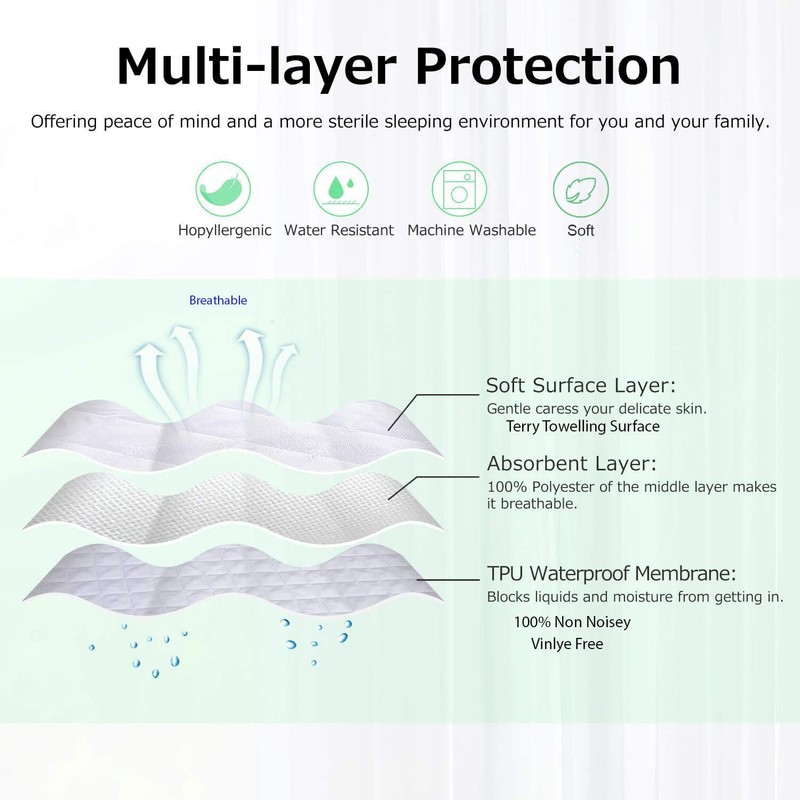 ✔ Non-Noisy Terry Towel Waterproof Mattress Protector